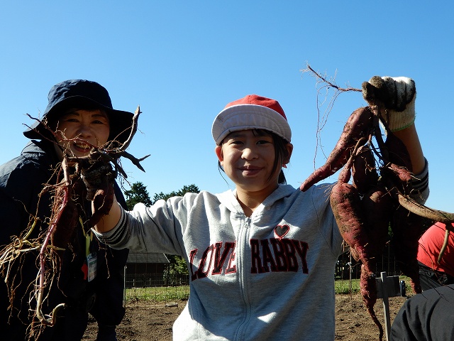 思っていたよりもたくさんのいもがとれ、手いっぱいに抱えてうれしそうに見せ合う姿が見られました。11月には、取れたいもでべったら餅づくりに挑戦します。