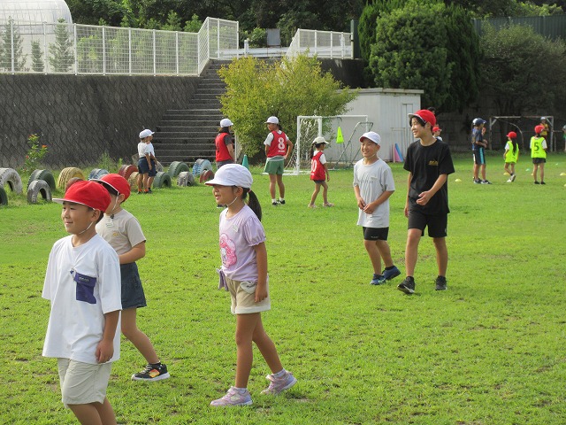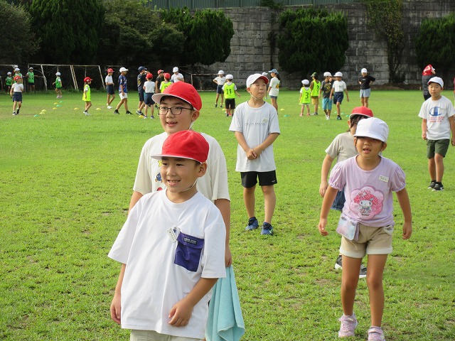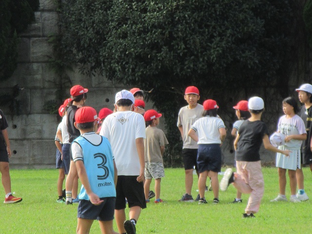 少し涼しくなった秋空の下、全校で「なかよし遊び」を行いました。子ども達は学年をこえたグループに分かれ、それぞれが違う遊びに挑戦しました。だるまさんがころんだや氷おになど遊び方はさまざま。どのグループも力を合わせて工夫しながら取り組み、秋空の校庭に笑い声が響きました。