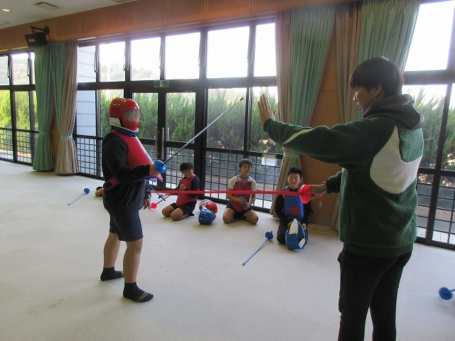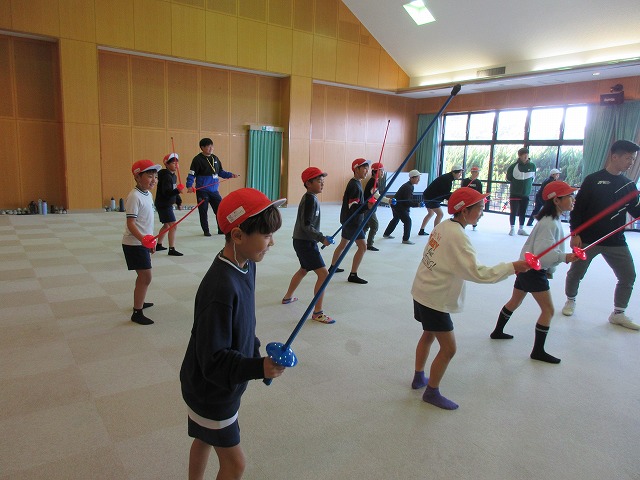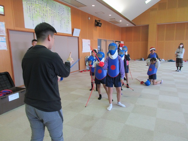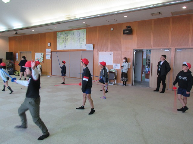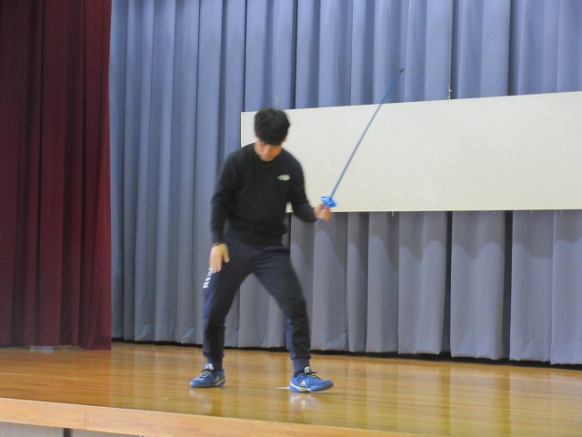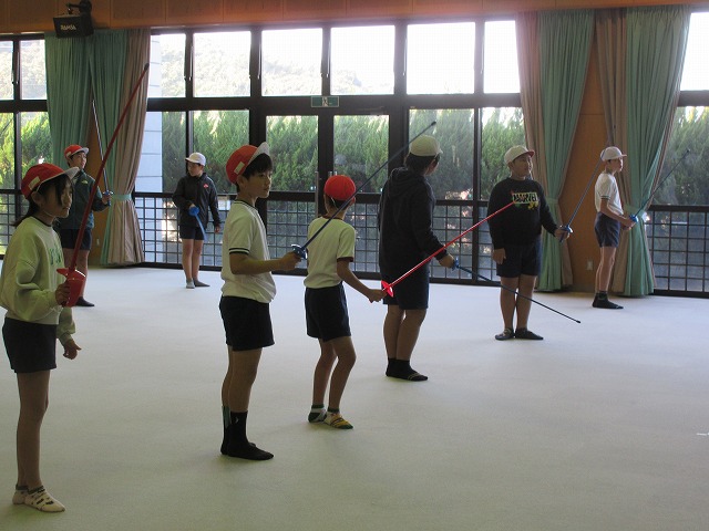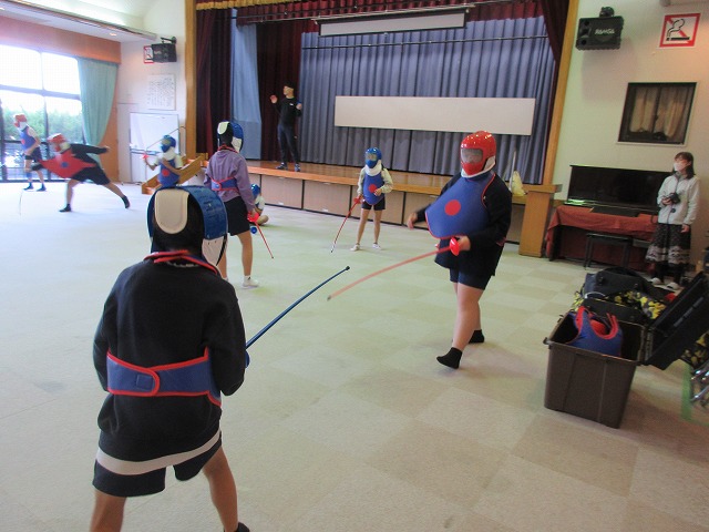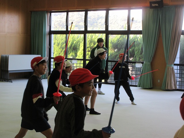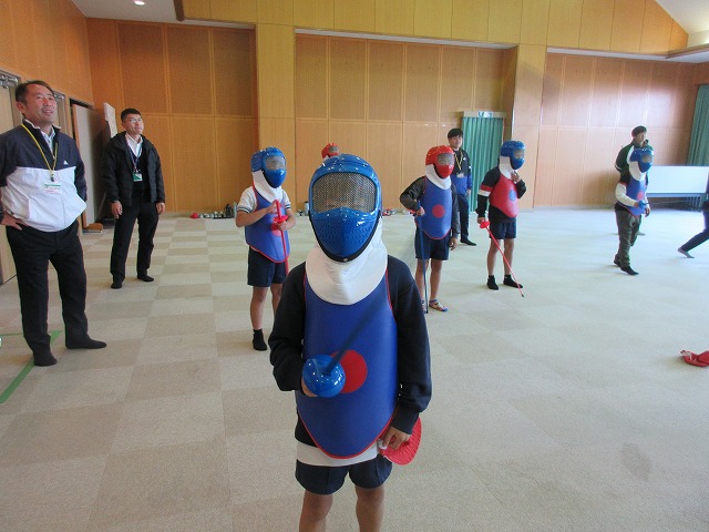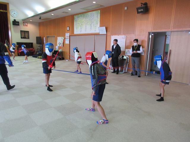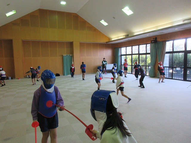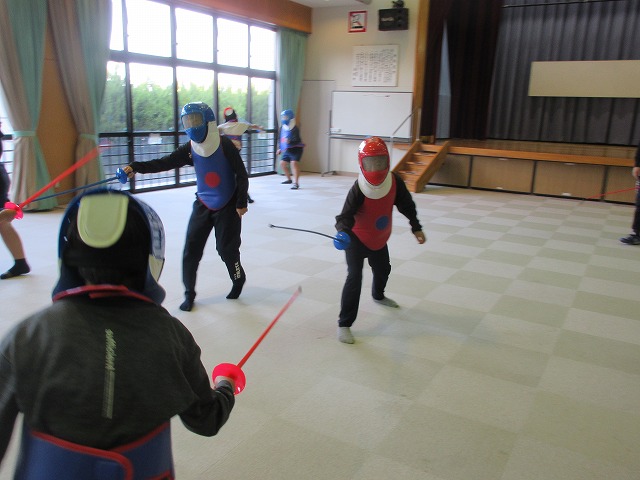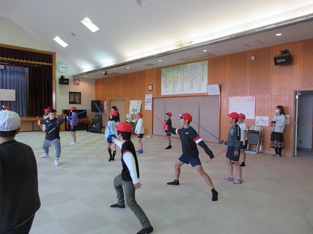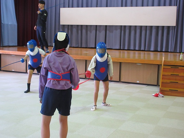 市役所に勤務されているフェンシング協会の方々が、四小にフェンシングの体験指導に来てくださいました。そこで、クラブ活動の1つ「スポーツクラブ」で体験を受けることになりました。簡単な立ち方、前後への動き方から始まり、防具をつけての1対1のゲーム形式まで45分間あっという間の体験活動でした。子どもたちは汗びっしょりで楽しそうにしていました。掛け声などは子どもたちに馴染みのない「フランス語」なので違和感があり、ちょっと笑ったりふざけたりしそうになった場面もありましたが、すぐに言葉にも慣れ、フランス語の掛け声に合わせてしっかりと動けるようになりました。ちなみに長崎県の小学校でフェンシングの授業を行ったのは今回が初めてだそうです。3月には復興アリーナで高校生のフェンシングの全国大会が開催されるそうです。興味がある方は足を運ばれてみてはいかがでしょうか?