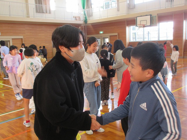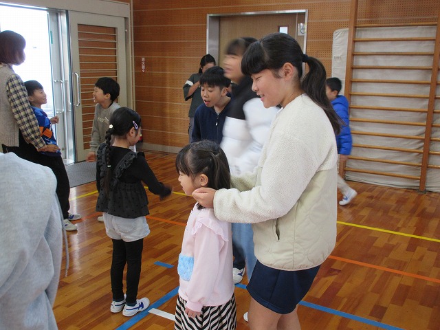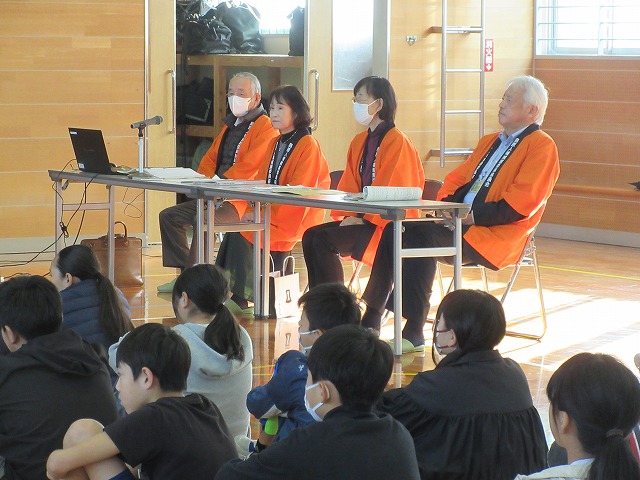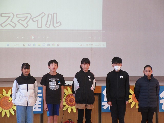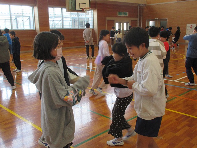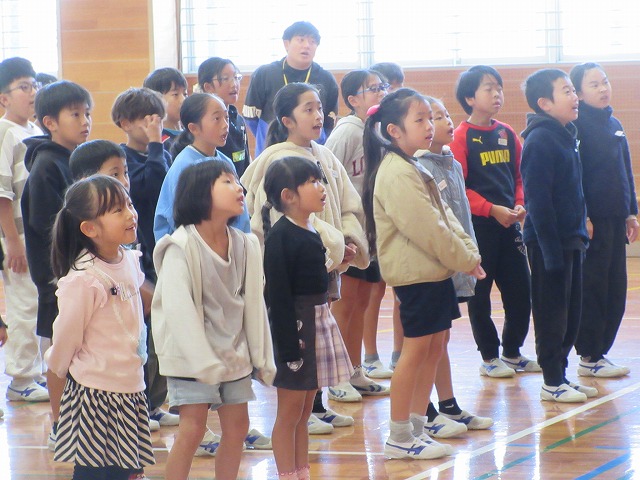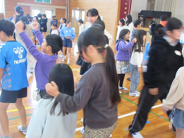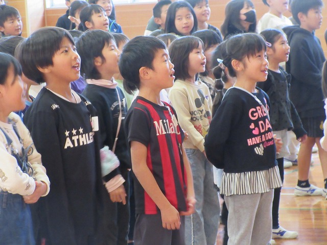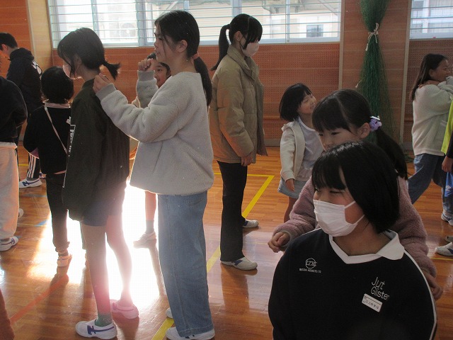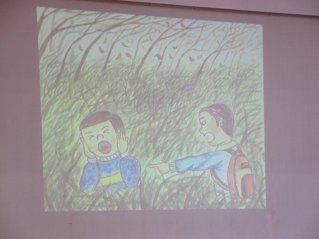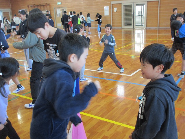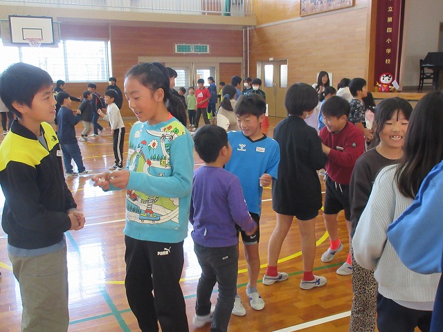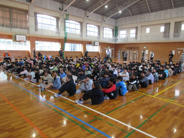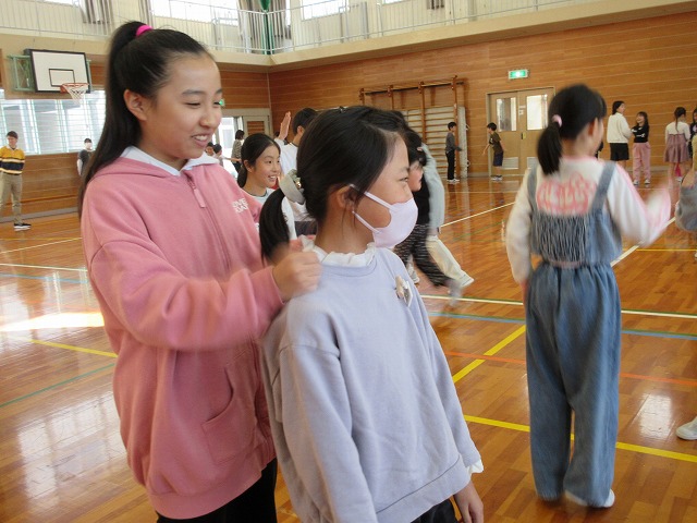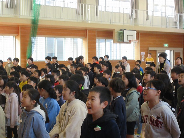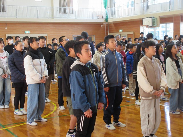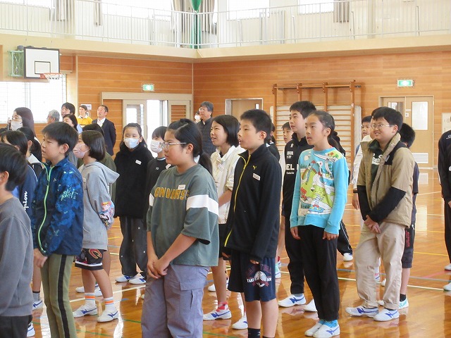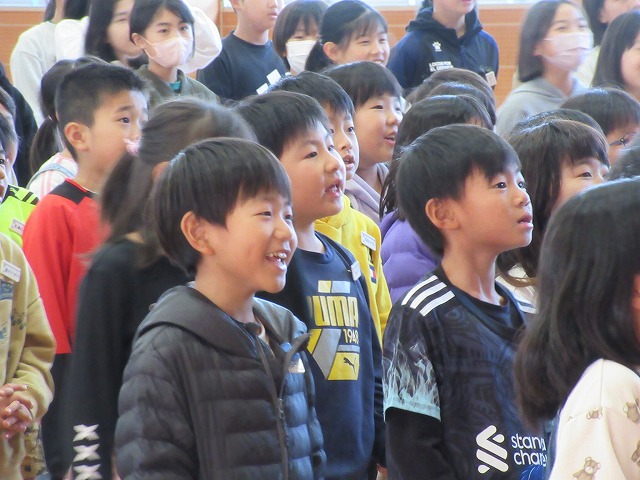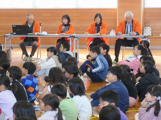 12月2日(火)2校時に島原市の人権擁護委員の皆さまを招いて「人権集会」を開きました。まず初めに校長先生から「自分を大切にする 友達を大切にする 人との違いを認める」という3つのお願いがありました。その次に人権擁護委員の方による自作の紙芝居「春一番」を見せてもらいました。そのお話からは、自分にそのつもりがなくても相手を傷つけてしまうことがあるということを学びました。その後は全校児童で「じゃんけん肩叩き」をしました。曲に合わせて移動し、出会った相手とじゃんけんをして負けた方が相手の肩を叩いてあげるというゲームです。みんな笑顔で肩を叩き合っていました。そしてみんなで話し合って決めた「四小人権宣言」を大きで声で発表し、「Smile」を合唱して終わりました。これからの子どもたちの言葉遣いや友達との接し方を見守っていきたいと思います。ご家庭でも人権集会の様子を話題にされてみてください。