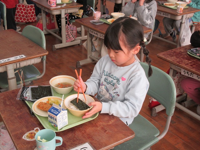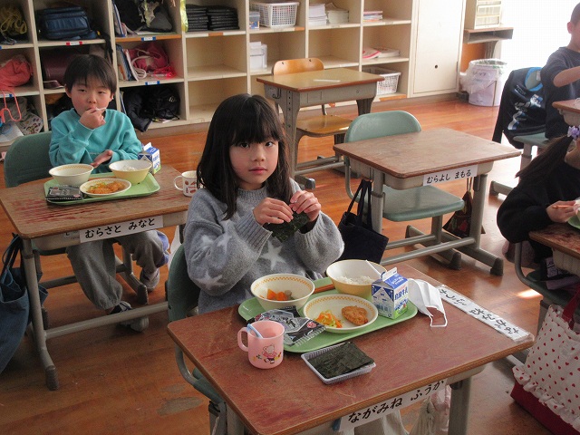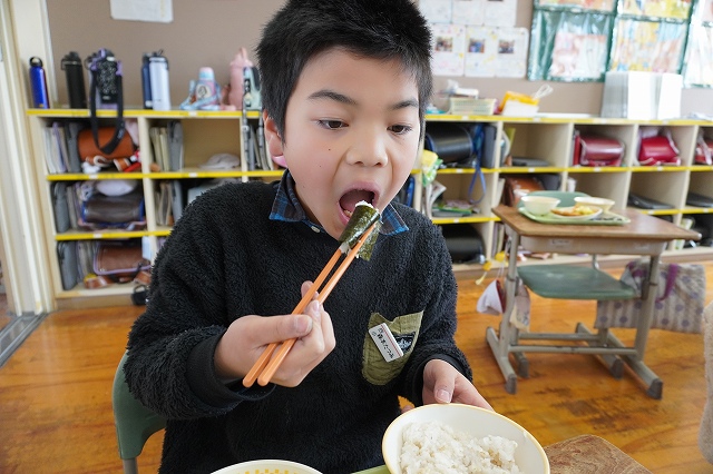 この海苔は、(株)丸政水産様から「有明海の海苔の美味しさと、地域の産業についてもっと知ってほしい」という観点からご提供いただいたものです。子どもたちは「有明海の海苔は美味しいね!」と言いながら、パリパリの食感をそのまま楽しんだり、ご飯に添えて美味しく味わいました。