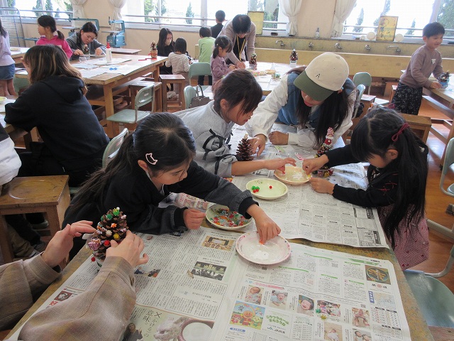 11月27日(木)授業参観を行いました。音楽では歌やリコーダーに楽しそうに取り組み、図工ではクリスマスツリーを親子で作りました。保護者の前で少し緊張しながらも発表する姿が見られ、一人一人が学びの成果をしっかりと伝えることができました。