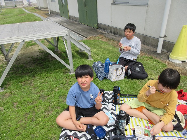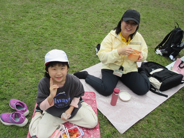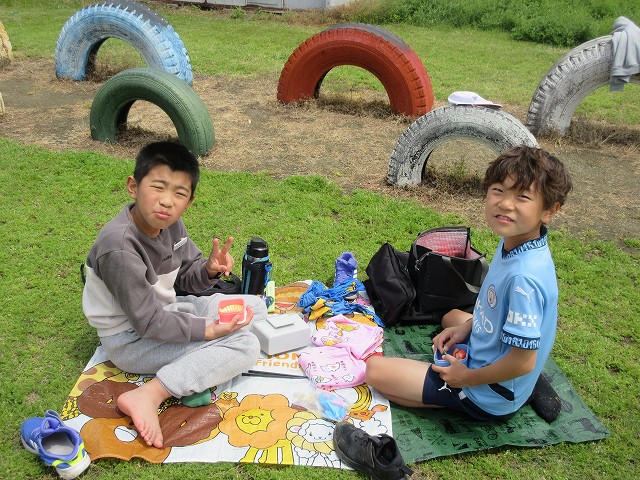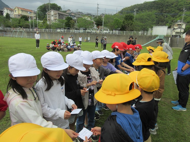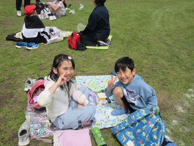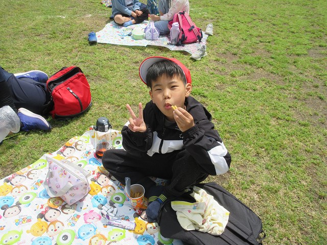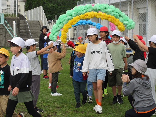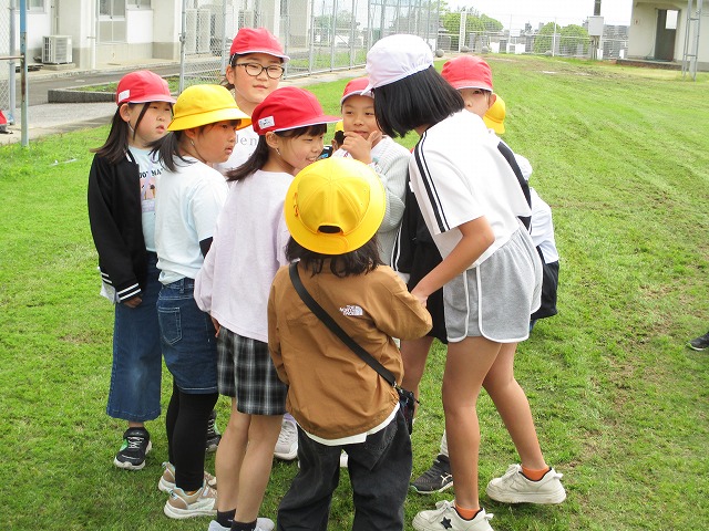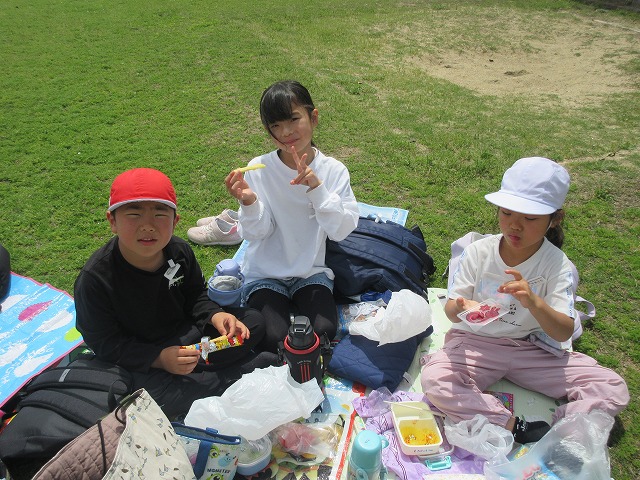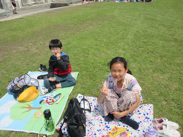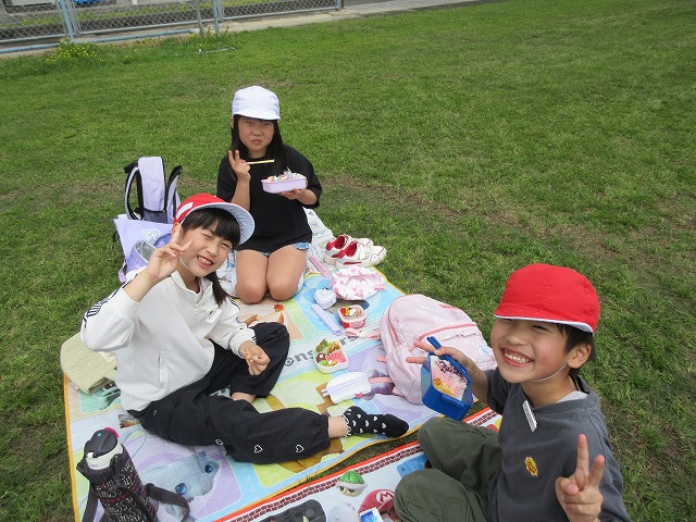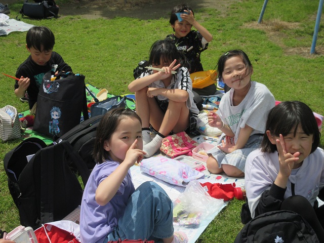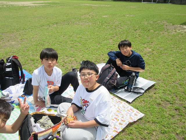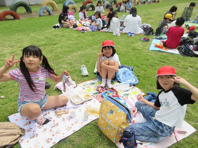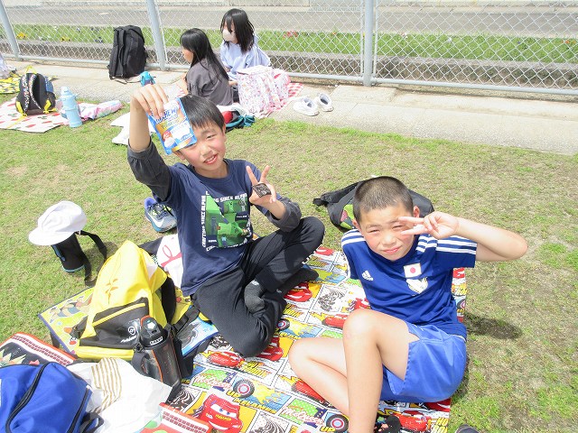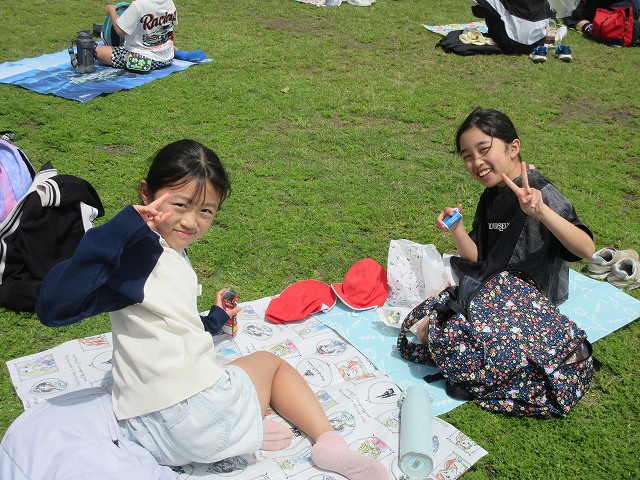 学校に戻ってからは、全員でキーワードの答え合わせを行い、正解が発表されると歓声が上がりました。その後、縦割り班ごとに校庭でお弁当を食べ、笑顔いっぱいの時間となりました。昼食後は、各班で考えた遊びを楽しみ、学年をこえて交流を深める思い出に残る遠足となりました。