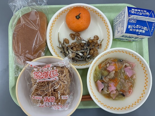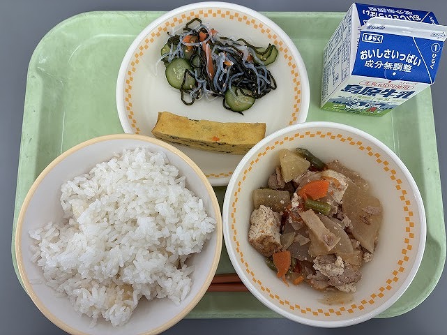 毎日の給食では、昔の給食の「すいとん」や、郷土料理の「皿うどん」、地場産物を使用した給食などが登場しています。