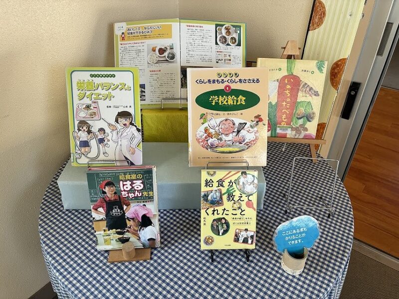 また、図書室にも給食や食べ物についての本を紹介しているコーナーもあります。