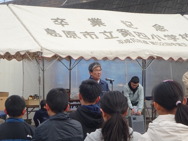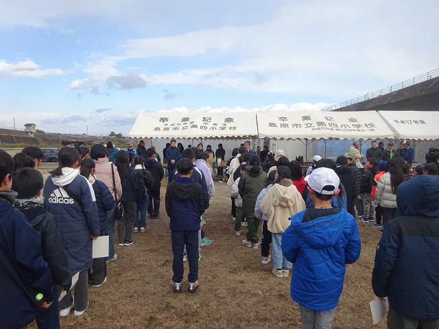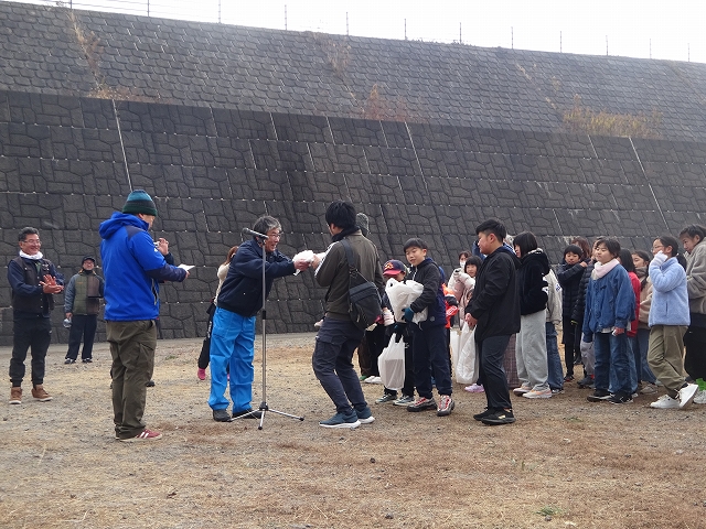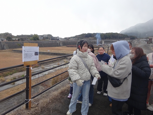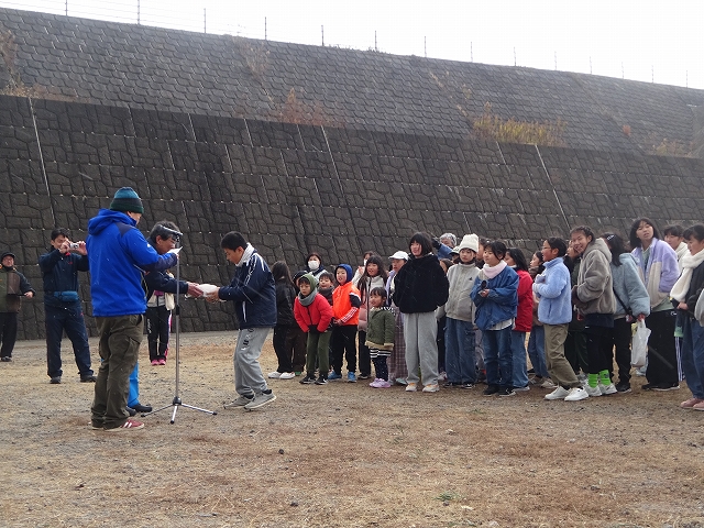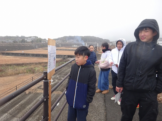 同時に開催されたウォークラリーでは、6年生が作った「地域に関するクイズ」を解きながら、中尾川沿いを歩いて回りました。