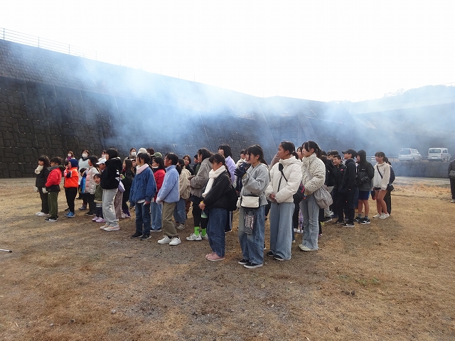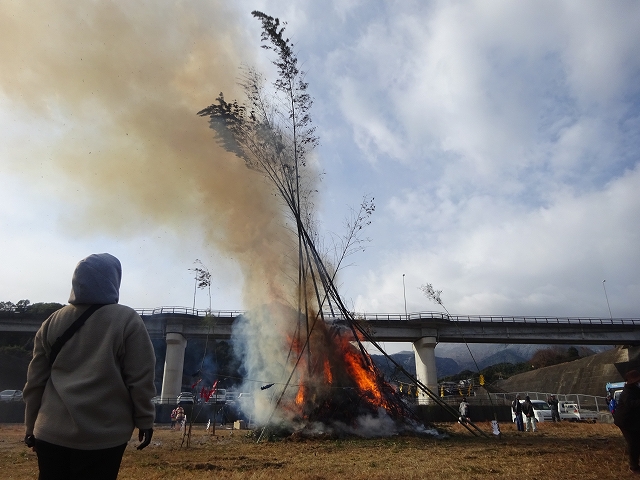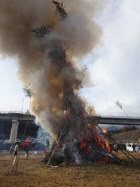 地域の皆さんと6年生が高いやぐらに火をともし、願いを天に送りました。
